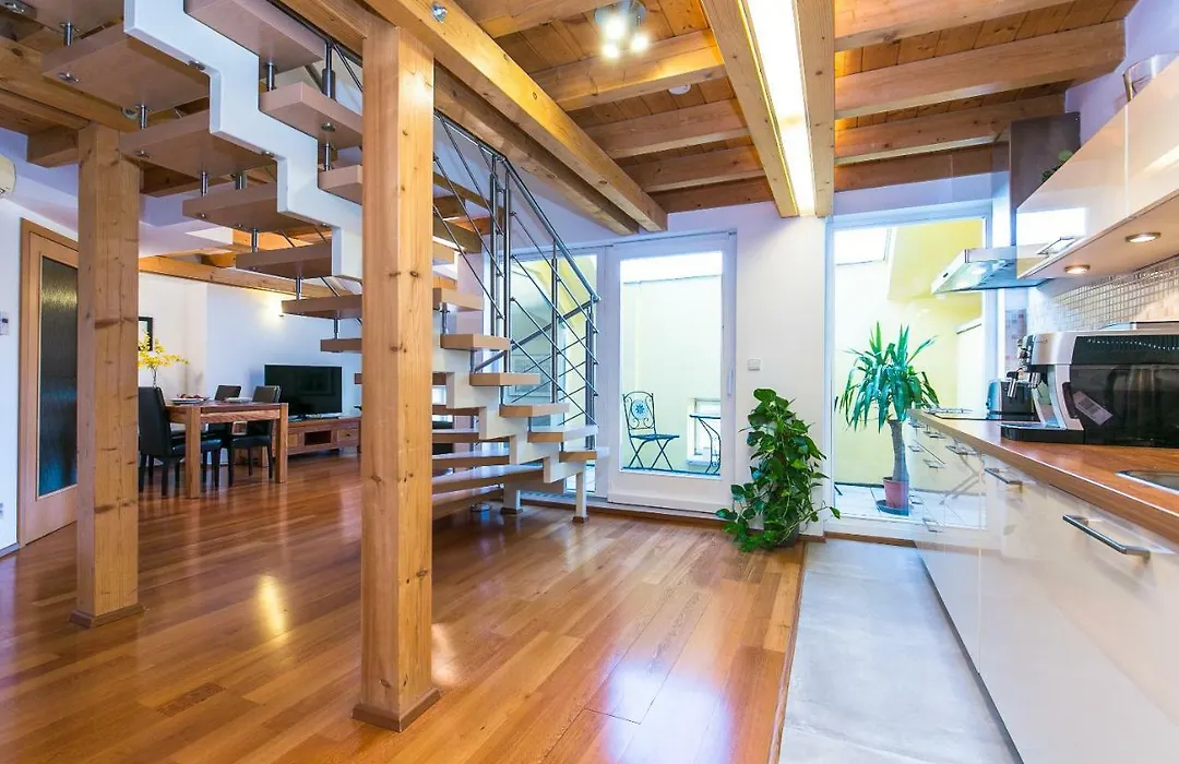 O Attic Apartment By Wenceslas Square Praga de 2 quartos está localizado na parte velha de Praga, apenas 550 metros de Národní Muzeum. Os hóspedes podem alugar bicicletas, e utilizar o parque de estacionamento público disponível por perto.